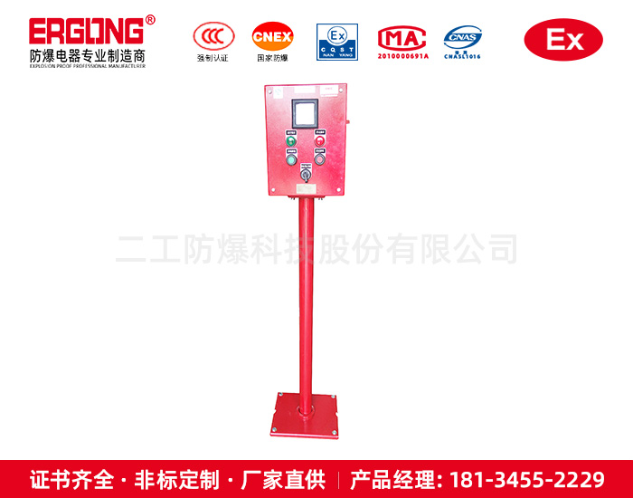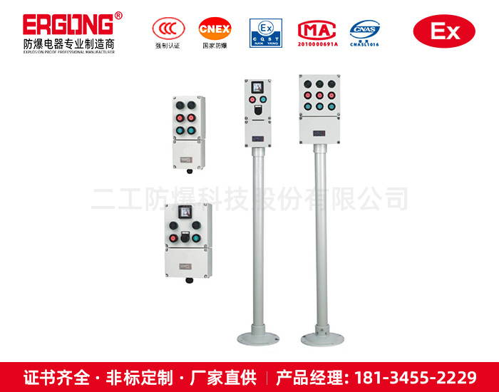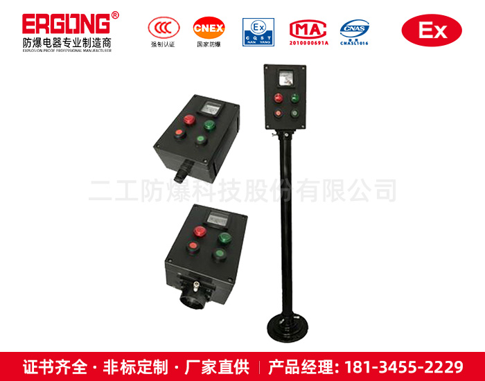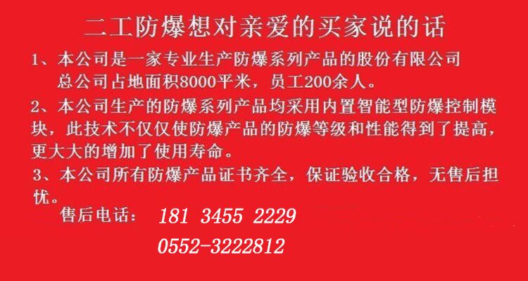 2. 本產品為改進型防爆產品,內部可裝防爆按鈕、防爆指示燈、防爆電流表、防爆開關、防爆電壓表等各種儀表和控制需要的部分;